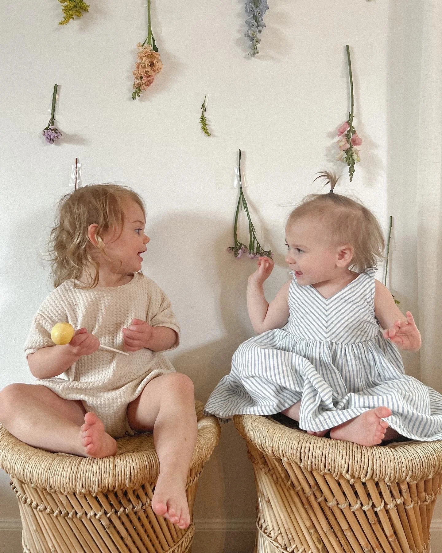 as i said, i’m very much minimally-minded and don’t care that much about going too extra with things, but i will usually do ONE focal point when i do birthday parties; i have this blank wall that is awkward to permanently fill with something in my home - so its become my backdrops wall! i remembered seeing floating flowers on fishing wire on pinterest a while ago and thought that could be so fun, therapeutic and beautiful! long story short, we didn’t know if we were gonna go through with rehns party due to being under the weather, so we scratched that idea since it takes quite some time to do & we went with this other inspo i found from pinterest around the same time.